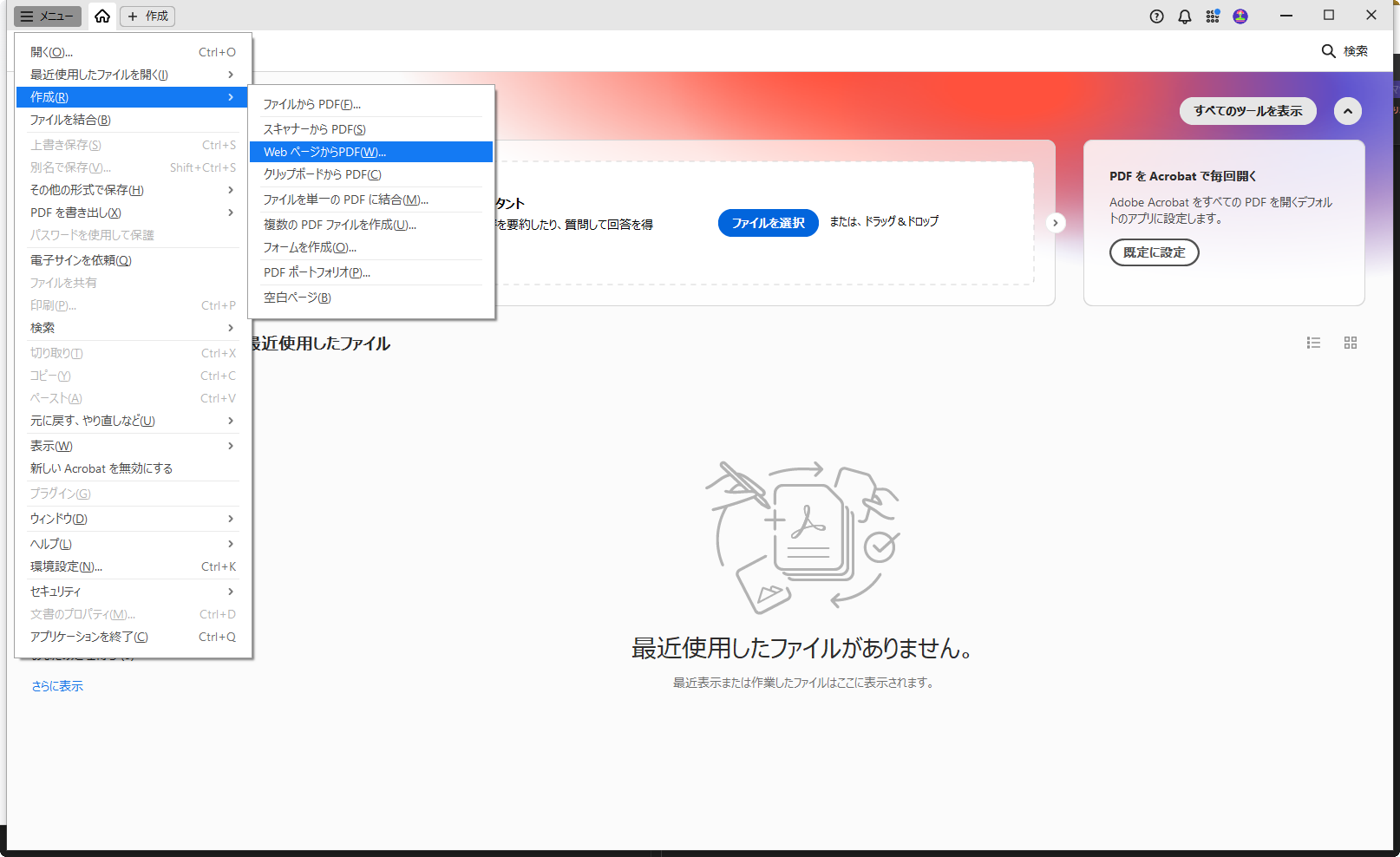 Adobe Acrobatを開き、以下の手順で機能にアクセスします: