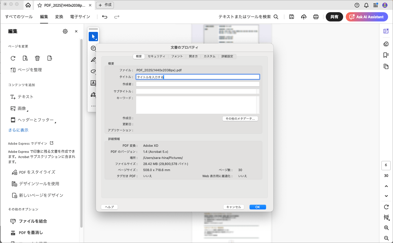 Adobe Acrobatでの仕上げ作業